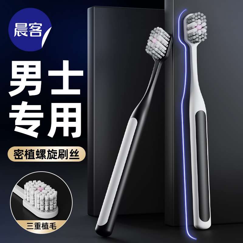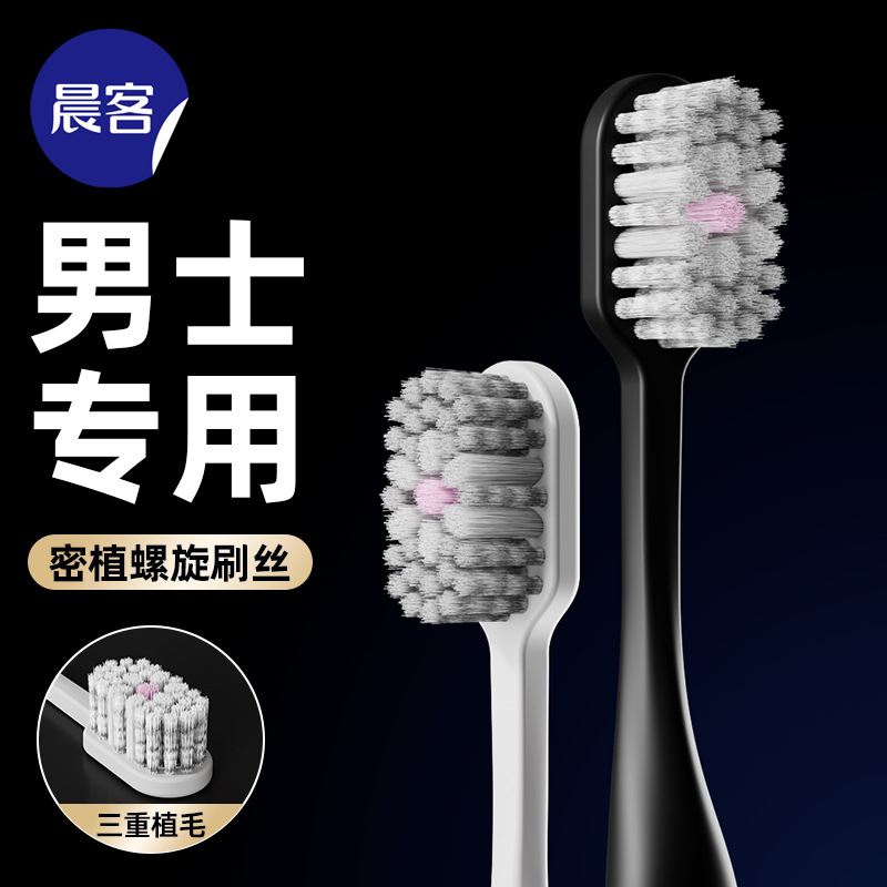 朝客男性専用ワイドヘッド歯ブラシソフト毛家庭用白黒螺旋糸2本入超密植毛メーカー卸売り