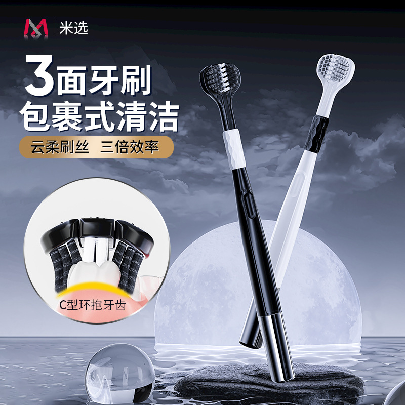 米選三面歯ブラシ軟毛成人歯ブラシ専用男性女子学生は舌苔家庭用カップルを剃ることができる