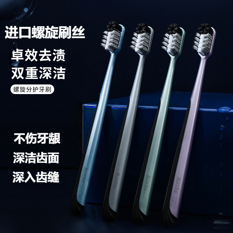 硬毛歯ブラシ Ruijie スパイラル毛大人用ミディアム硬毛歯ブラシメンズ特別な歯ブラシ卸売ディープクリーニング