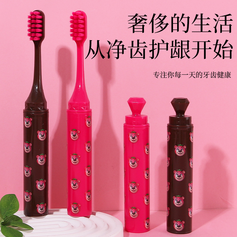 ライト高級口紅チューブポータブル歯ブラシイチゴクマかわいいカップル柔らかい毛歯ブラシ大人家庭用男性と女性