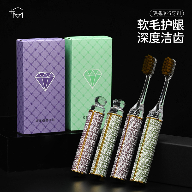 分体式歯ブラシ折り畳み携帯旅行服軟毛保護歯茎成人男性女性専用取り外し可能ダイヤモンドハンドル
