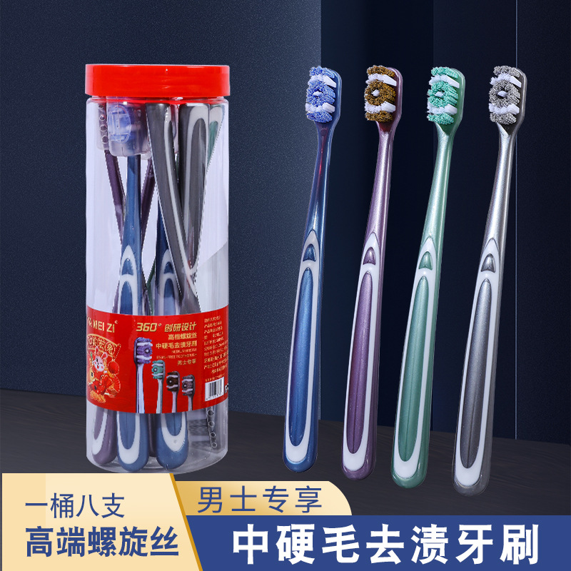 360度男性の中の硬い毛の歯ブラシは専用にタバコの歯に行って高級な螺旋の糸の男女の成人の桶に8本を漬けます。