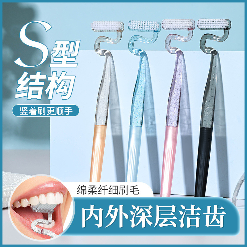 革新的な特許取得済みのS字型縦型歯ブラシ、成人男性と女性向け、特殊な形状の柔らかい毛の舌苔と歯間のクリーニングと歯肉保護、Han Nia