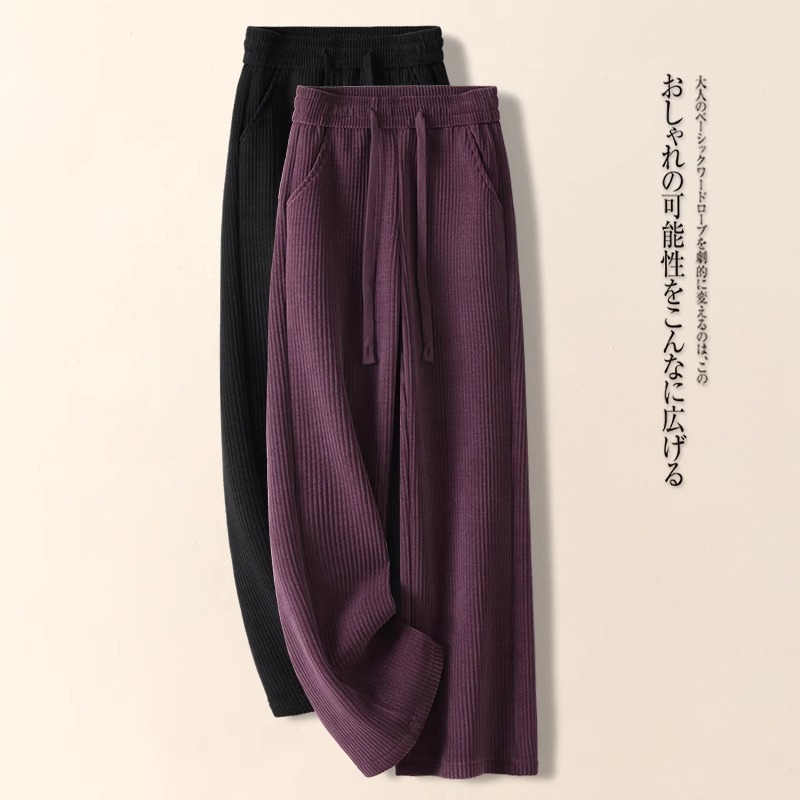 2025年新作 ハイウエスト ドレープ感のある細身コーデュロイストレートパンツ ゆったりパープルシェニールワイドパンツ レディース 秋冬