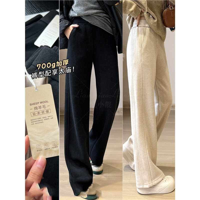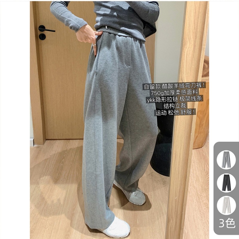 超厚手のベルベットの厚手のズボンの女性2024秋冬の新型東北insカジュアルでゆるいストレートパンツ