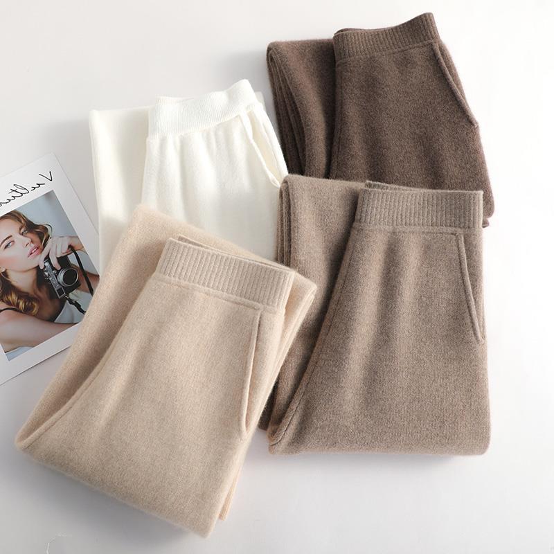 Led斯市秋冬ウールニットのゆったりしたストレートズボンの女性のカシミヤのワイドレギンスのズボンの小さい背のポケット