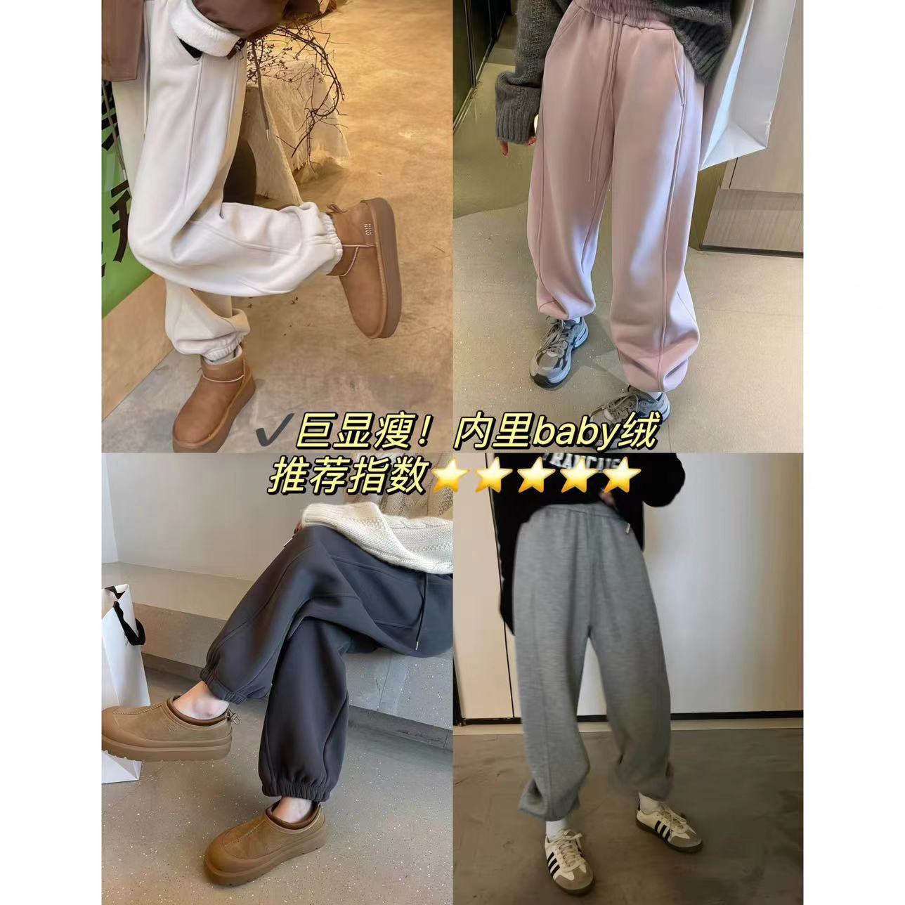 300斤の特大サイズの太ったmmとベルベットのスポーツパンツ女性秋冬のゆるいストレートカジュアルな太ももがバナナのズボンを垂らす
