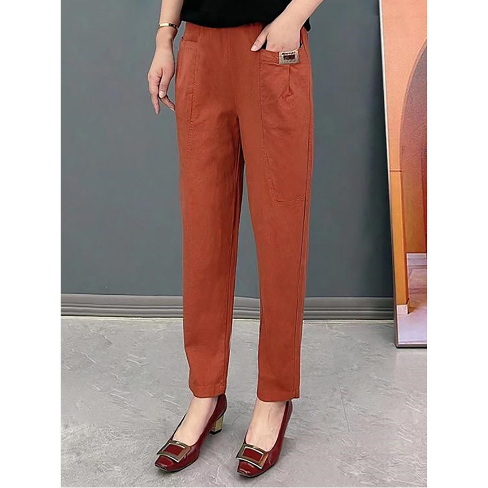 洗濯綿の夏は鏡にまたがってファッション的な大きいサイズは腰の9分のカジュアルなズボンの高腰のお母さんに薄い金のハーレムのズボンの女性を詰めます。