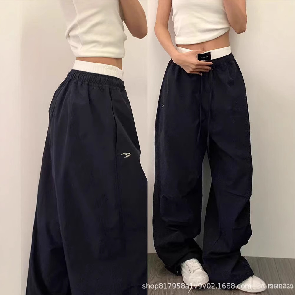 アメリカの速乾工装ズボンの女性春秋2025の新型のゆったりとした広脚カジュアルなストレートの怠惰なリラックス感のあるスポーツパンツ