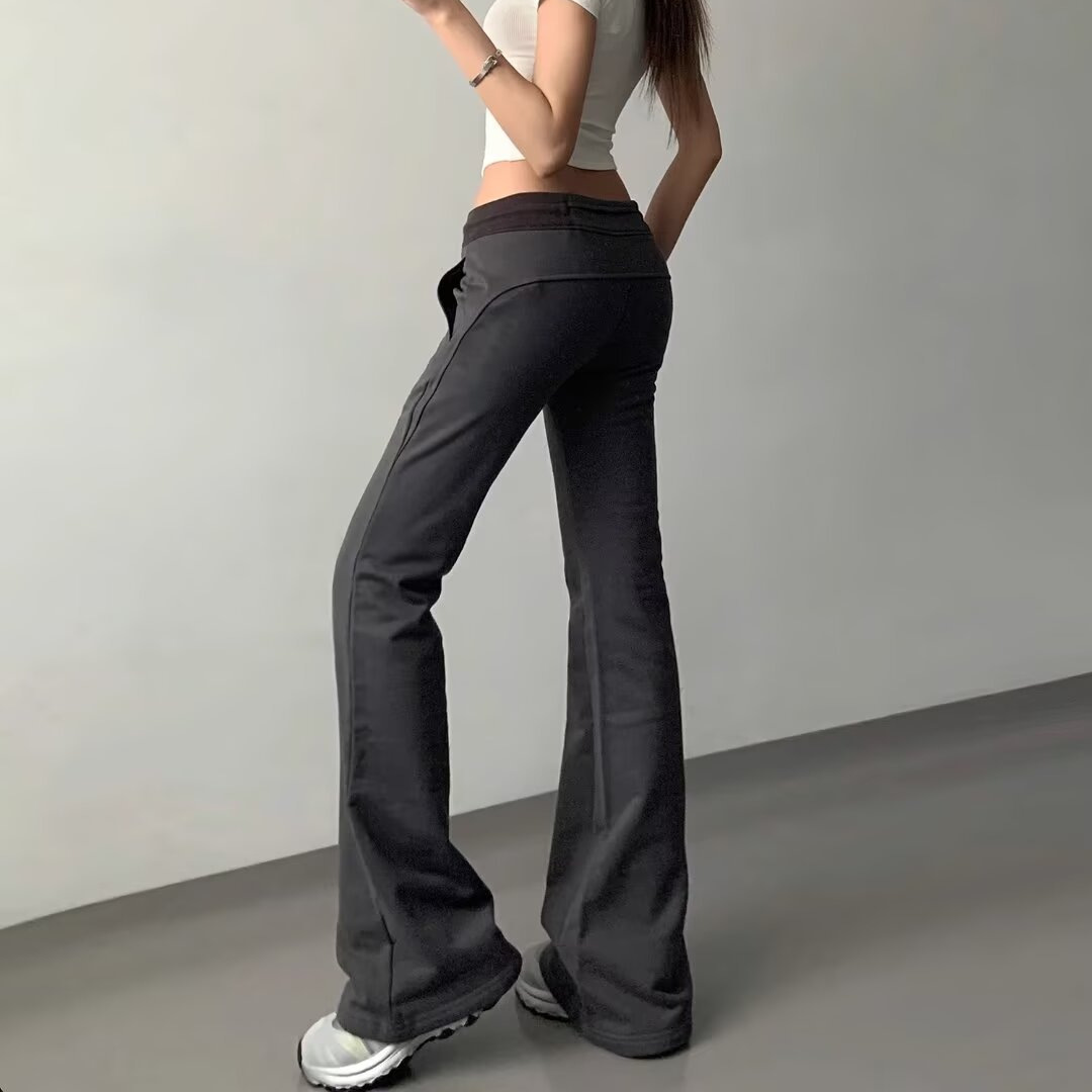 アメリカンレトロなマイクロフレアスウェットパンツ、女性用、2025年秋冬新作、スリムでホットな女の子向け、フロアレングスのカジュアルローウエストスポーツパンツ