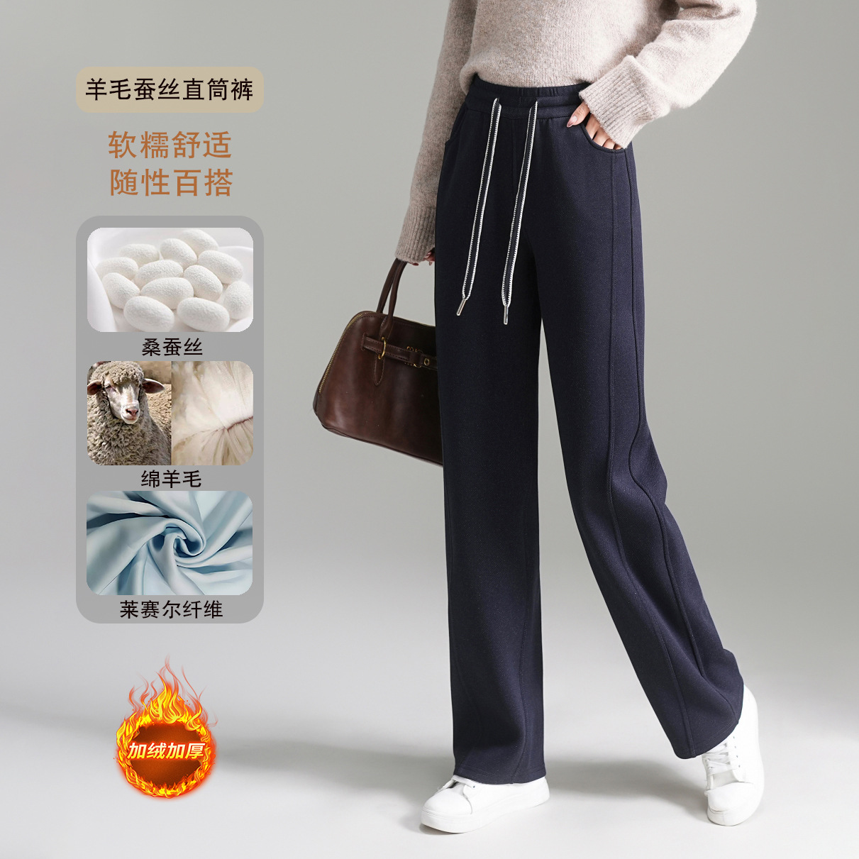 ウールのストレートパンツの女性の狭いバージョンの秋冬のベルベットの保温高腰はやせているペンダント感があります。