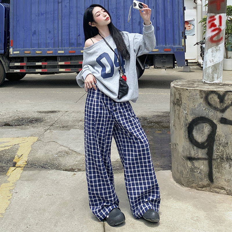 【今ライン】格子縞のオタクと同じゆるいワイドパンツの春のカジュアルで怠惰な風が痩せている格子縞のモップ