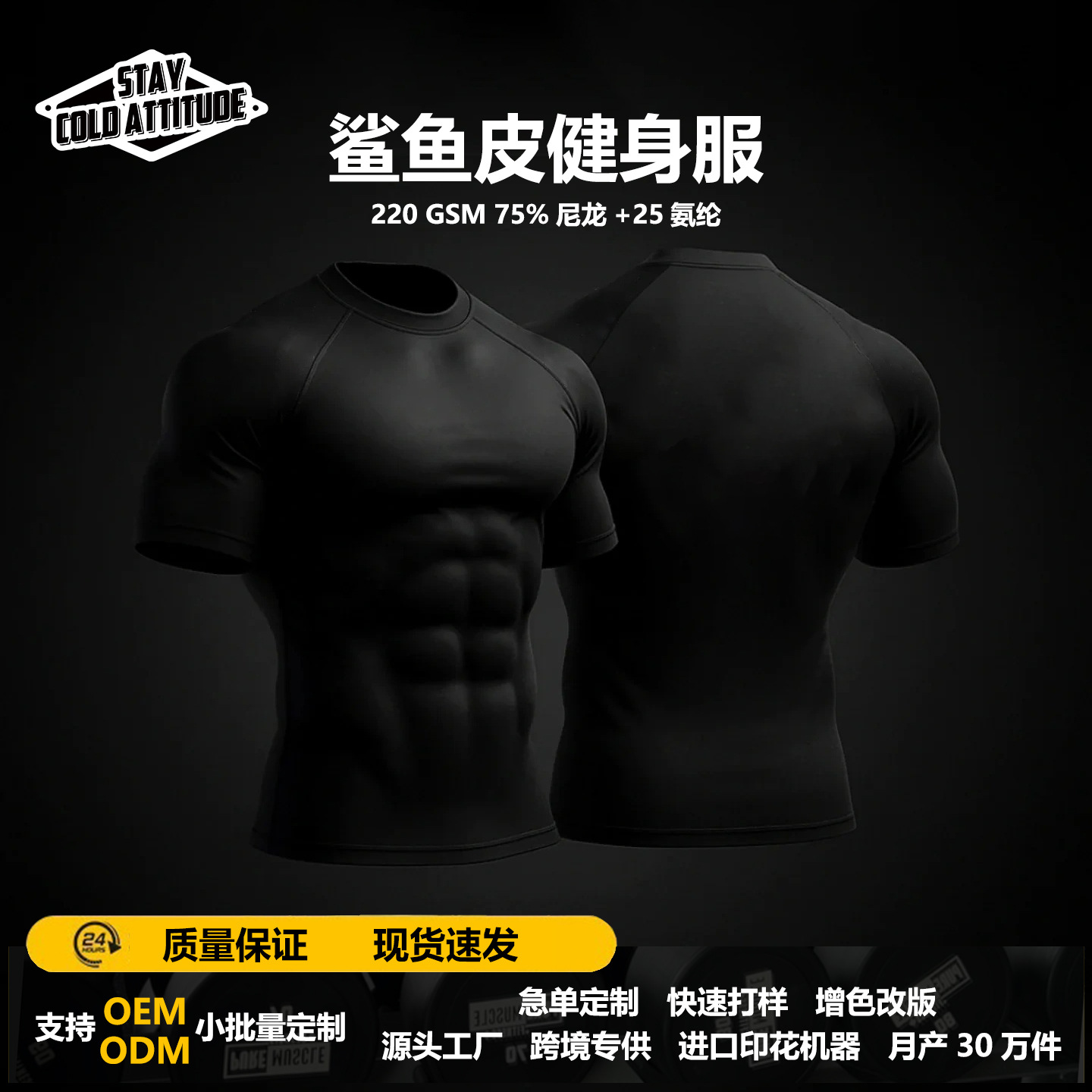 注文専用の越境メンズフィットネス用タイトフィット腹筋運動シェイプアップ通気性速乾性筋トレ半袖Tシャツ
