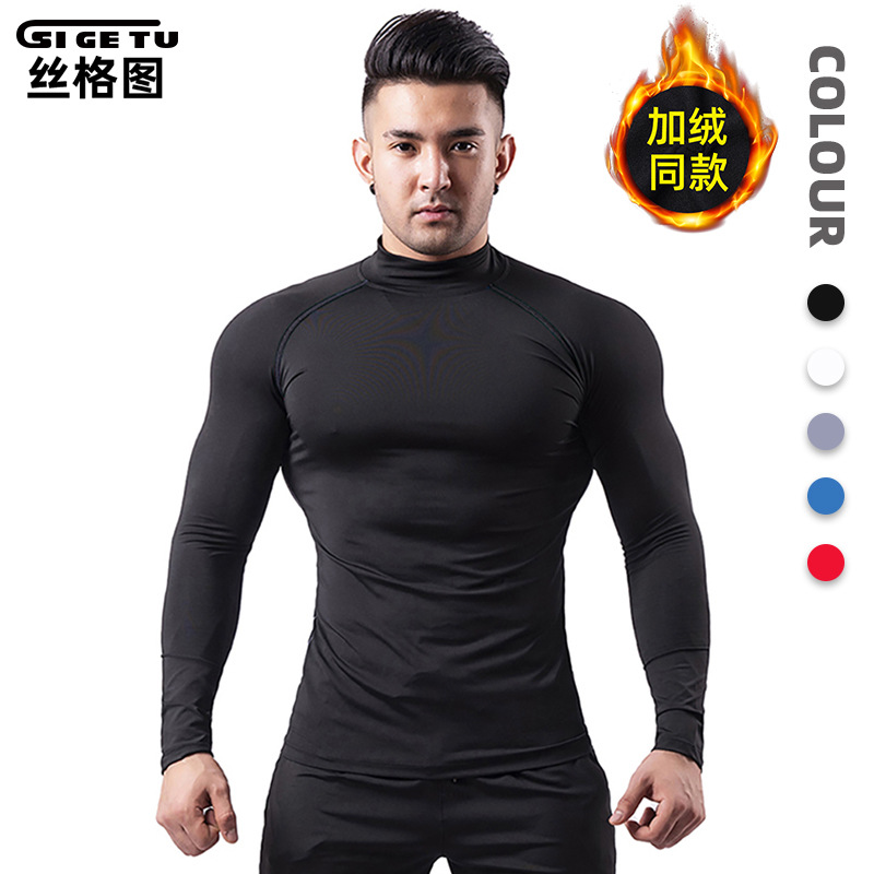 神馬源工場秋冬フィットネス服男長袖運動レオタード男弾力高襟速乾衣