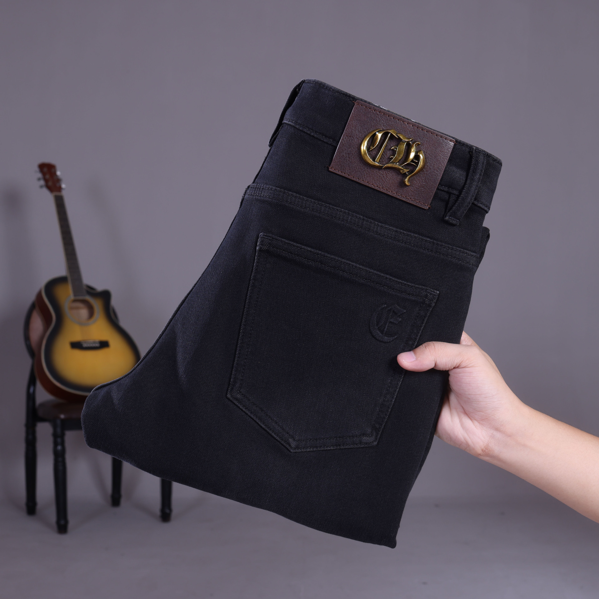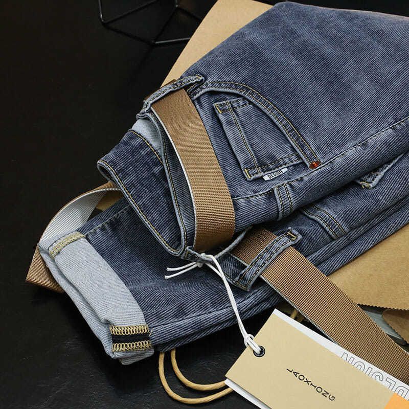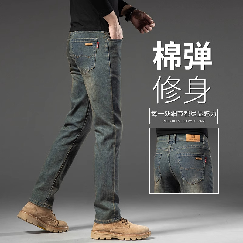 2025 新しいハイエンドジーンズメンズストレートスリムメンズパンツ春と秋のレトロウォッシュストレッチ新塘ロングパンツ