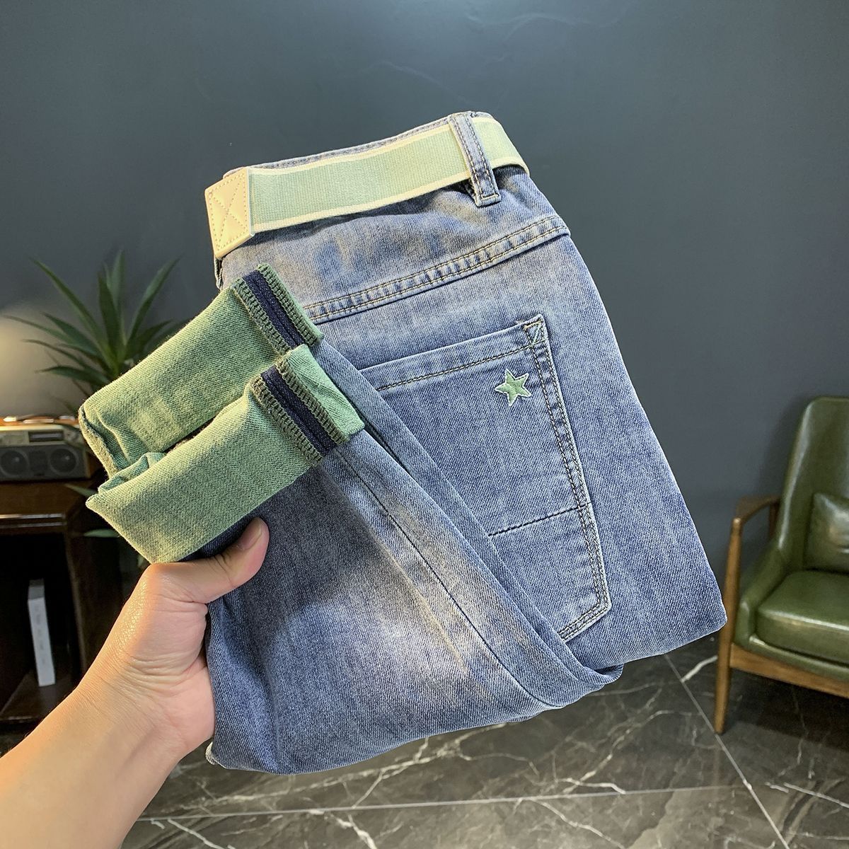 ベルベットのジーンズの男性は冬に保温ズボンを着ることができます。