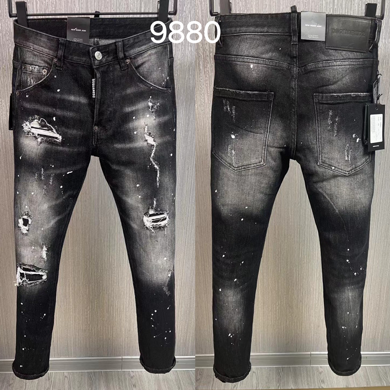 9880二乗潮牌ジーパン欧米クロスボーダーメンズストレートデニム長ズボンヨーロッパ駅破洞水洗いズボン