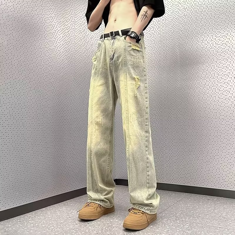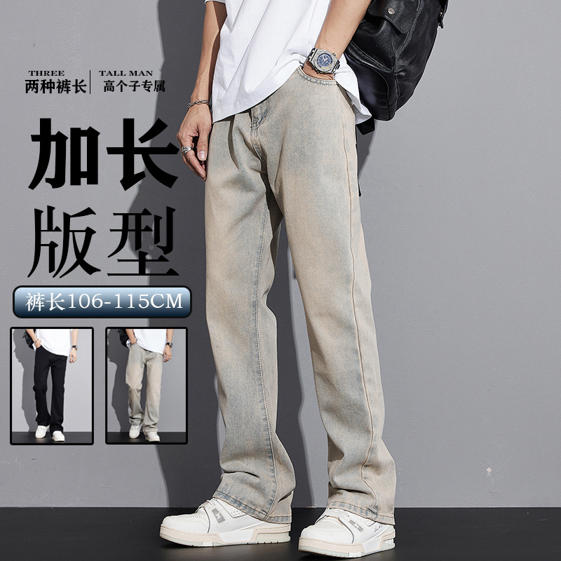 2024春の背の高いジーンズ男性アメリカの高街ストレートパンツ