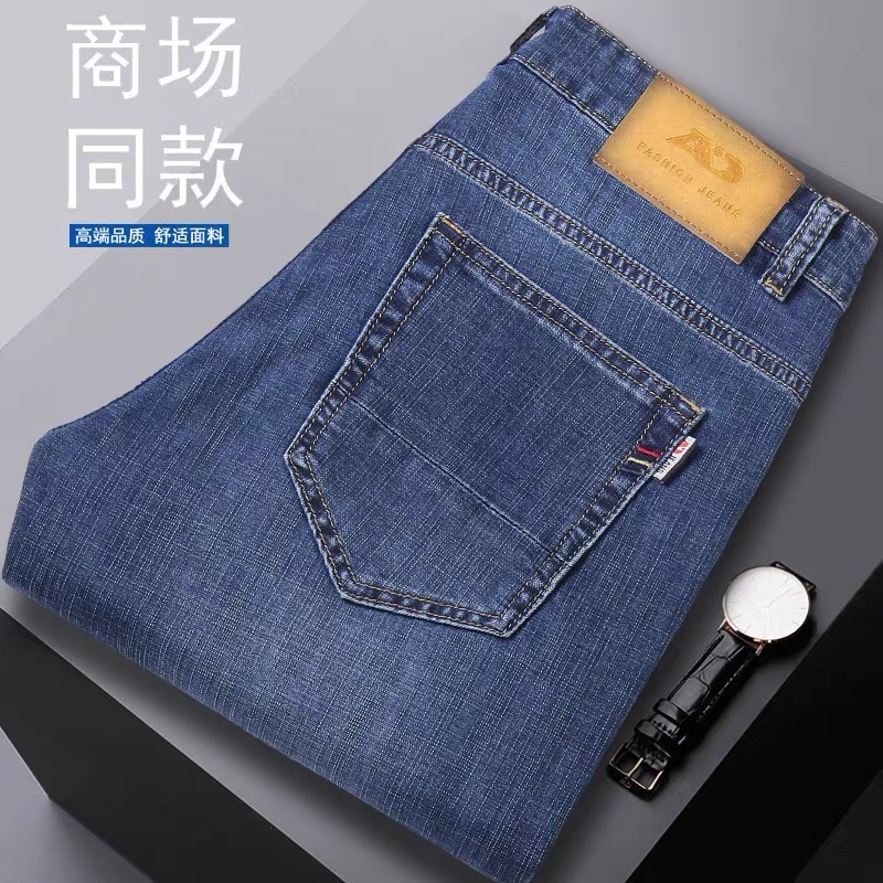 2024 夏薄型ハイエンドライト高級ジーンズメンズストレートルーズ大きいサイズストレッチメンズビジネスカジュアルパンツ