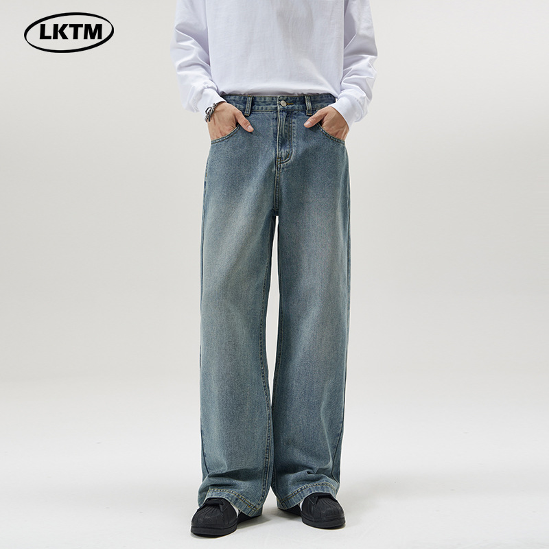 LKTMメンズ # アメリカ式水洗いcleanfitゆるいジーンズ男性潮牌百合直筒a型モップ長ズボン