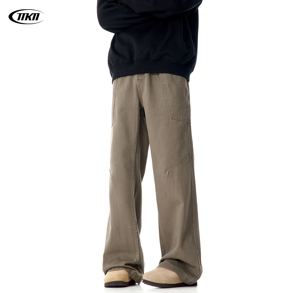 ムチウメンズウェア|2025秋冬新作アメリカンジーンズメンズルーズフィットレトロウォッシュ加工ワイドレッグ万能ロングパンツ