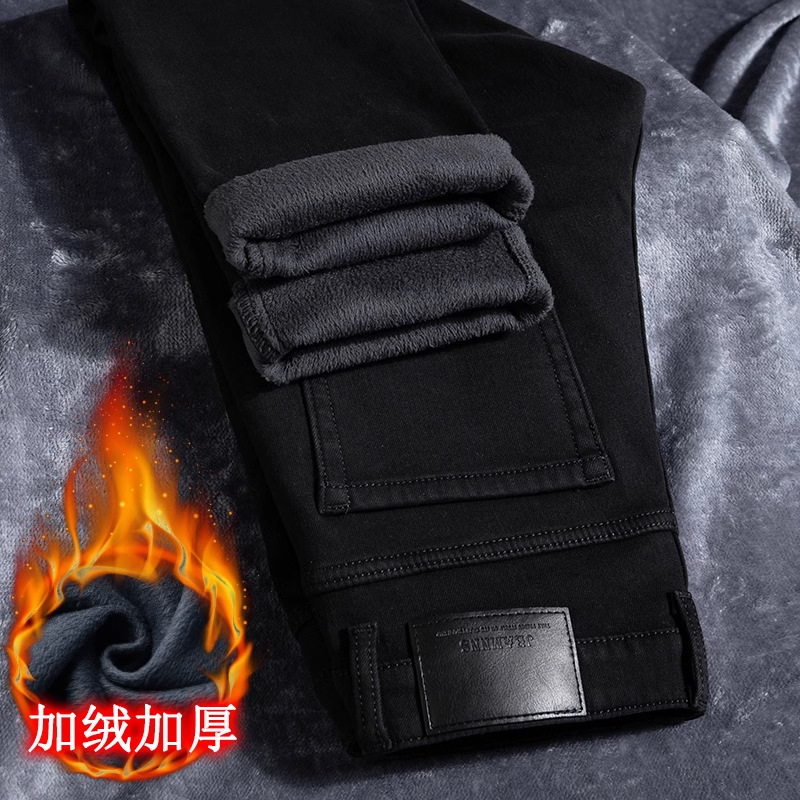 冬には、ジーンズを厚くして、男性は足を小さくして、高級な黒色ファッションのカジュアルなズボンと秋冬の厚さのモデルを身につけます。