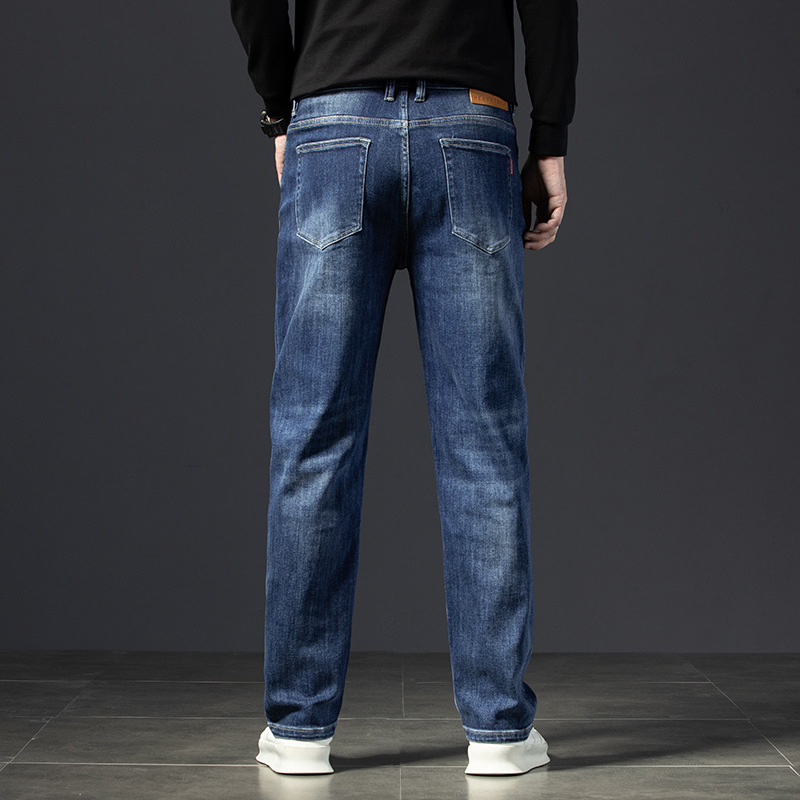 【ズボンの長さを変えなくてもいい】高品質秋冬綿弾力ジーンズ男直筒ゆるいビジネスジーンズ男
