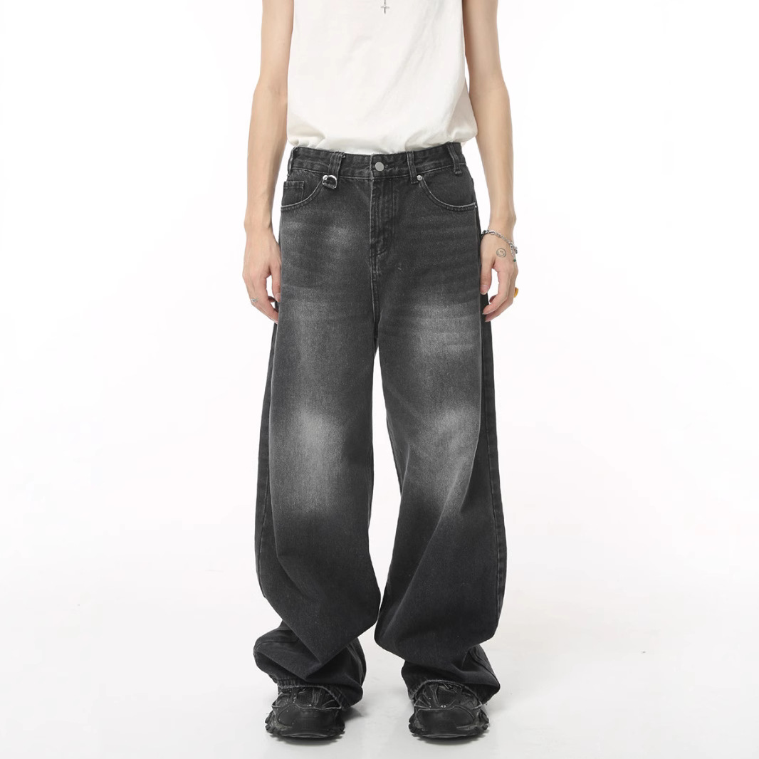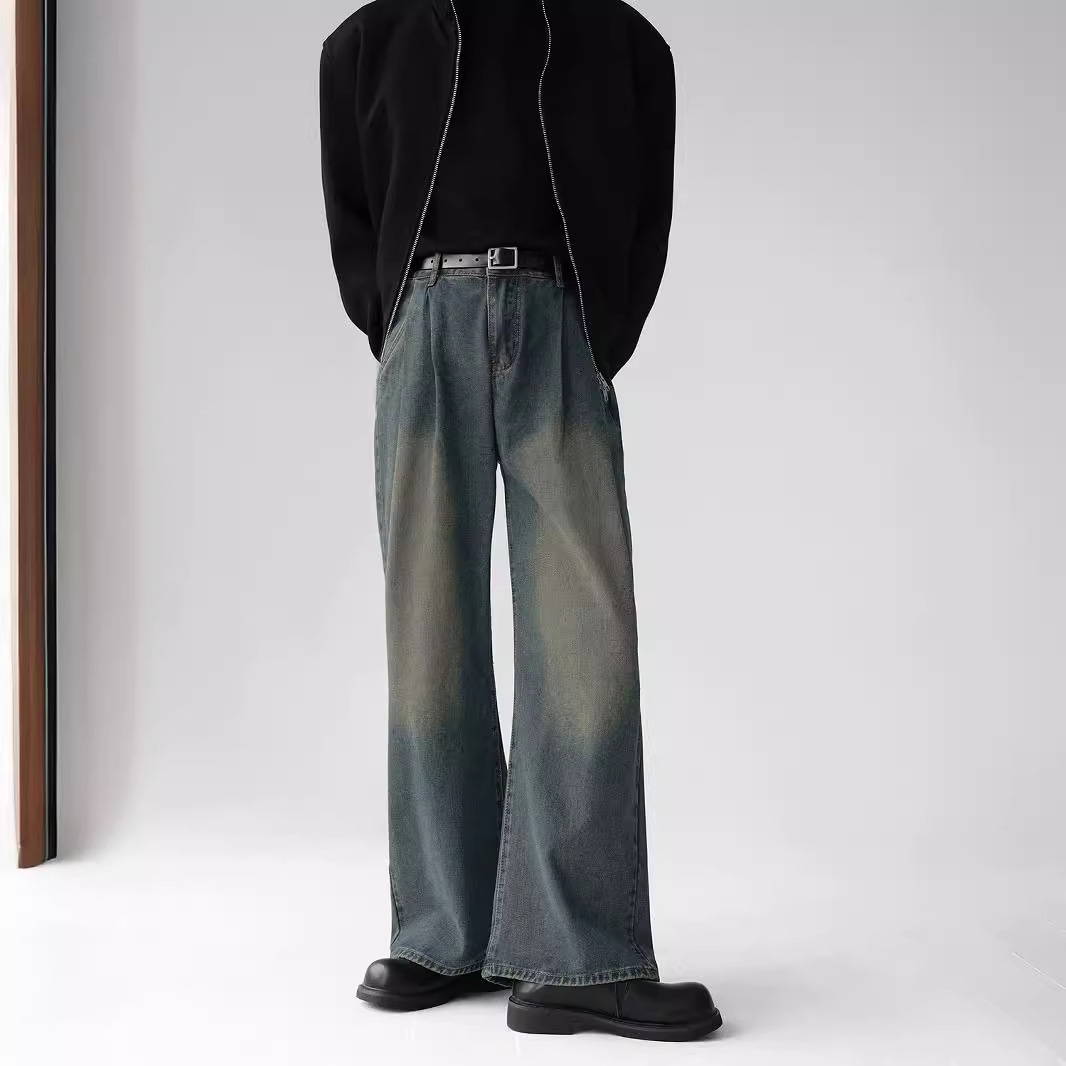 韓国INS高級感ジーンズ男性ゆるいストレートレトロ古いグレーのズボンを作る