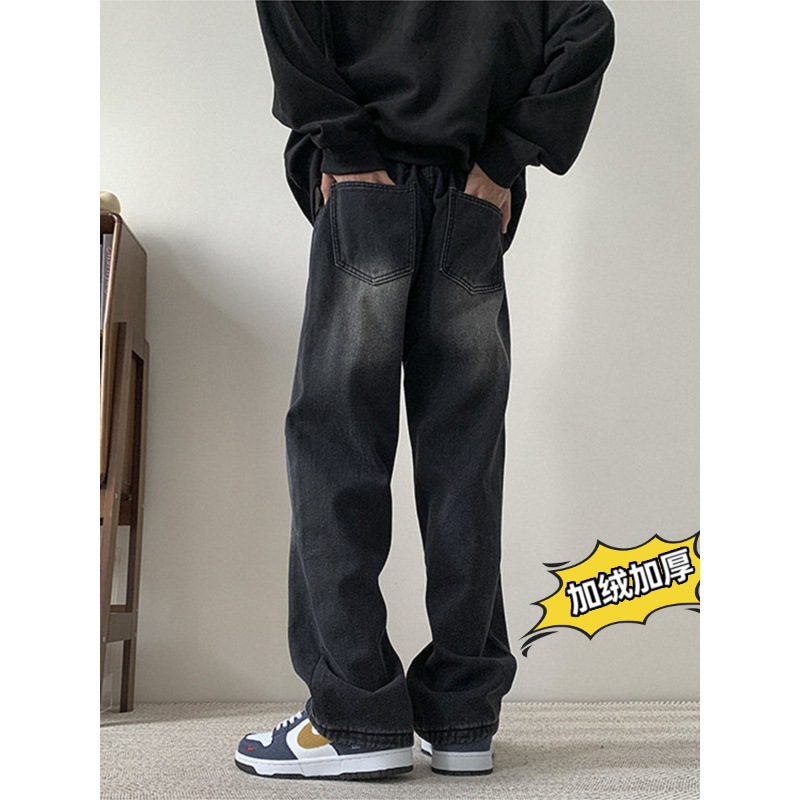 秋冬にベルベットをつけてジーンズ男2024新塘高級ゆるいストレート男性ジーンズ保温長ズボン