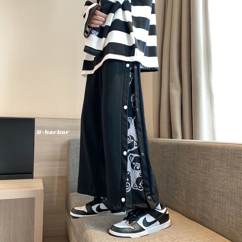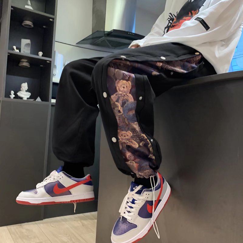 ベアーのボタン付きスポーツパンツ男女2022春夏高街アメリカhiphopストレートワイドレギンスins潮