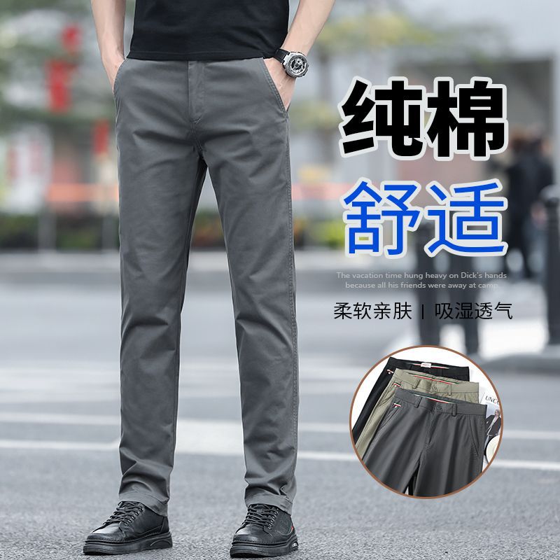 秋冬用カジュアルパンツ メンズ ゆったりストレート 綿100% ロングパンツ 男性用 2025年新作 夏用トレンドブランド ストレッチ素材のスーツパンツ
