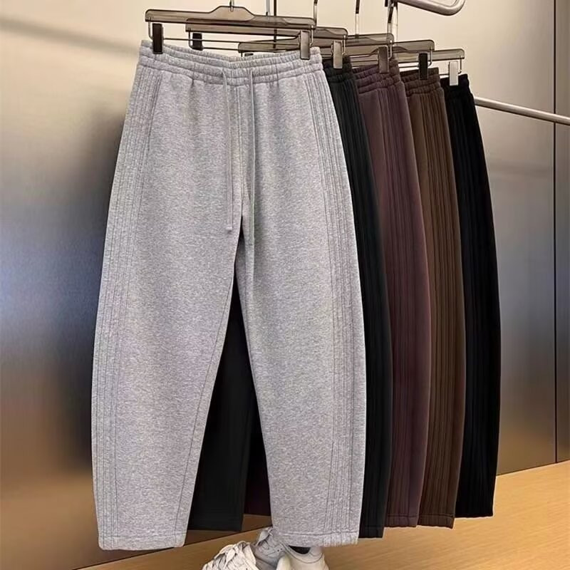 2024秋冬メンズカジュアルパンツ、冬用裏起毛厚手スウェットパンツ、裾絞りハーレムパンツ、ゆったりスポーツパンツ