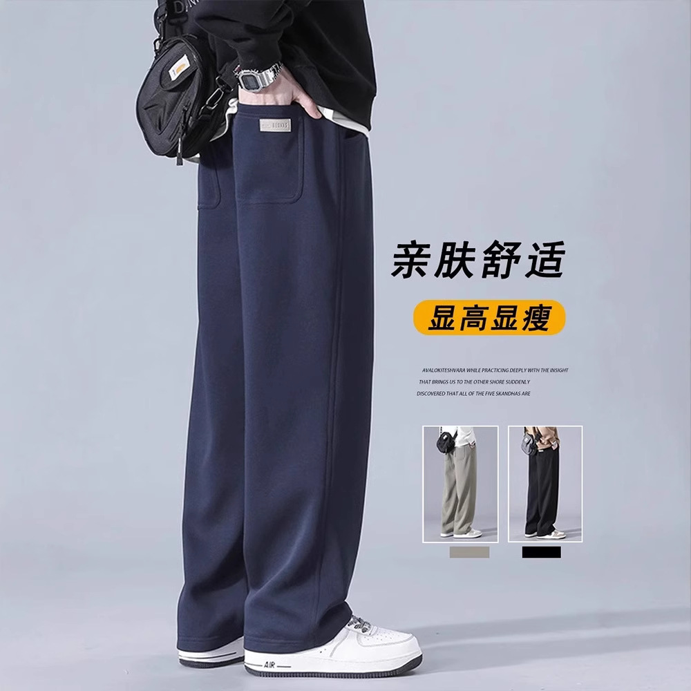 ゆったりとしたストレートカジュアルパンツ男性春秋タイプのファッションブランドの垂れ下がった感のあるワイドレギンスのスポーツパンツアメリカのレトロなワイドレギンスのスポーツパンツ