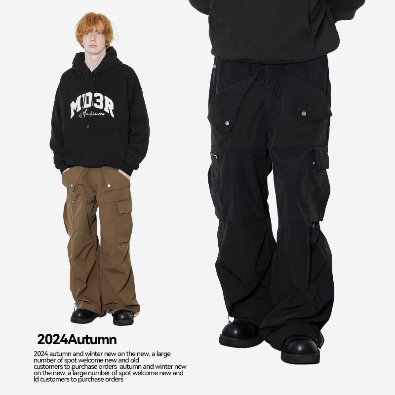 モップパンツ香港風工装ズボン男性カジュアルパンツ春秋潮牌高街ゆるいストレートパンツ男