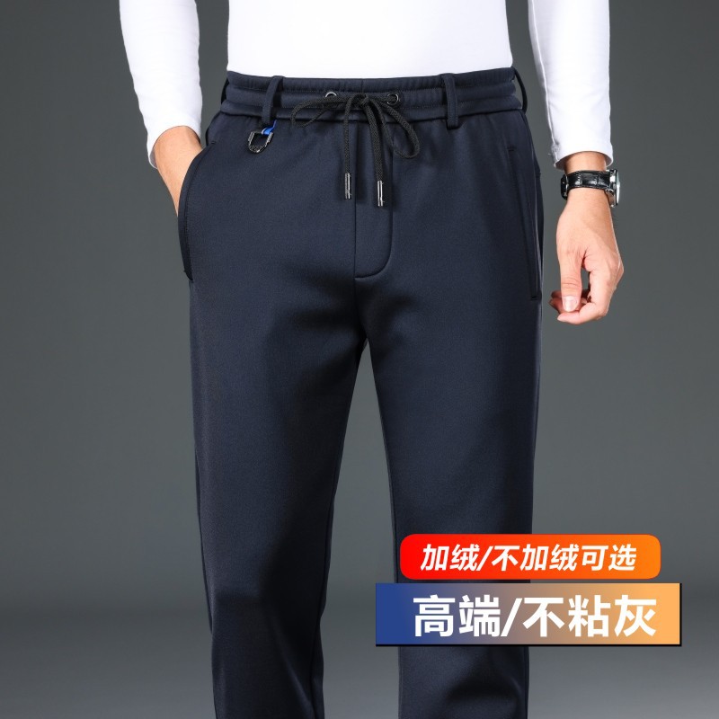 秋冬メンズゴムウエストカジュアルパンツ、ゆったりストレートハイウエスト高伸縮パンツ、厚手中年向けロングパンツ、スポーツパンツ