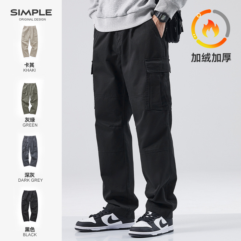 秋冬の綿の多ポケットのズボンの男性のゆったりとしたストレートのアメリカのファッションブランドの青年の黒色のカジュアルなズボン