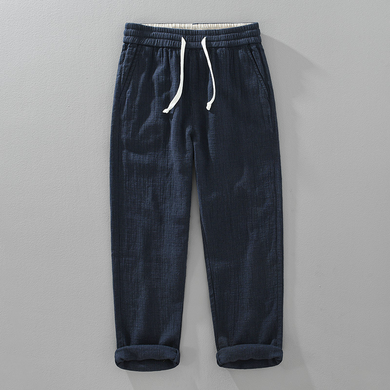 1355秋冬二重亜麻筋理感カジュアルストレートズボン男性日本系レトロゆるい男性麻ズボン