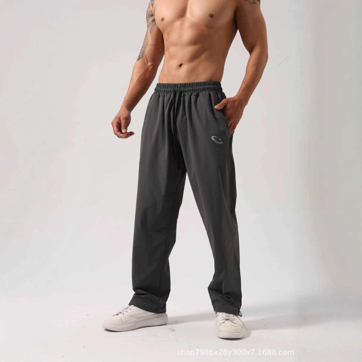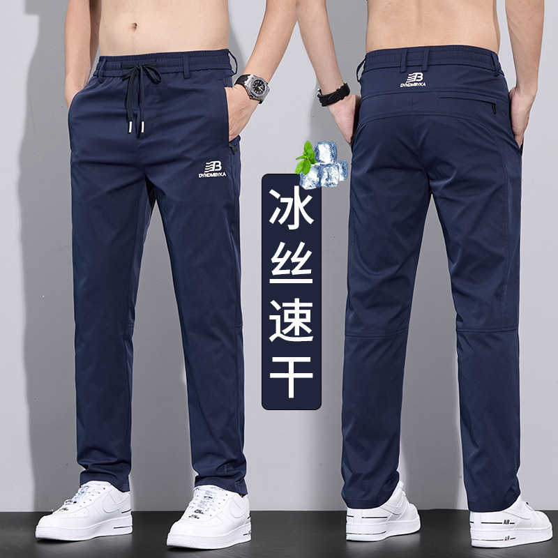 薄手の氷糸ズボン男性春夏男性トレンド速乾カジュアルパンツ大サイズ運動ゆるいストレートパンツ