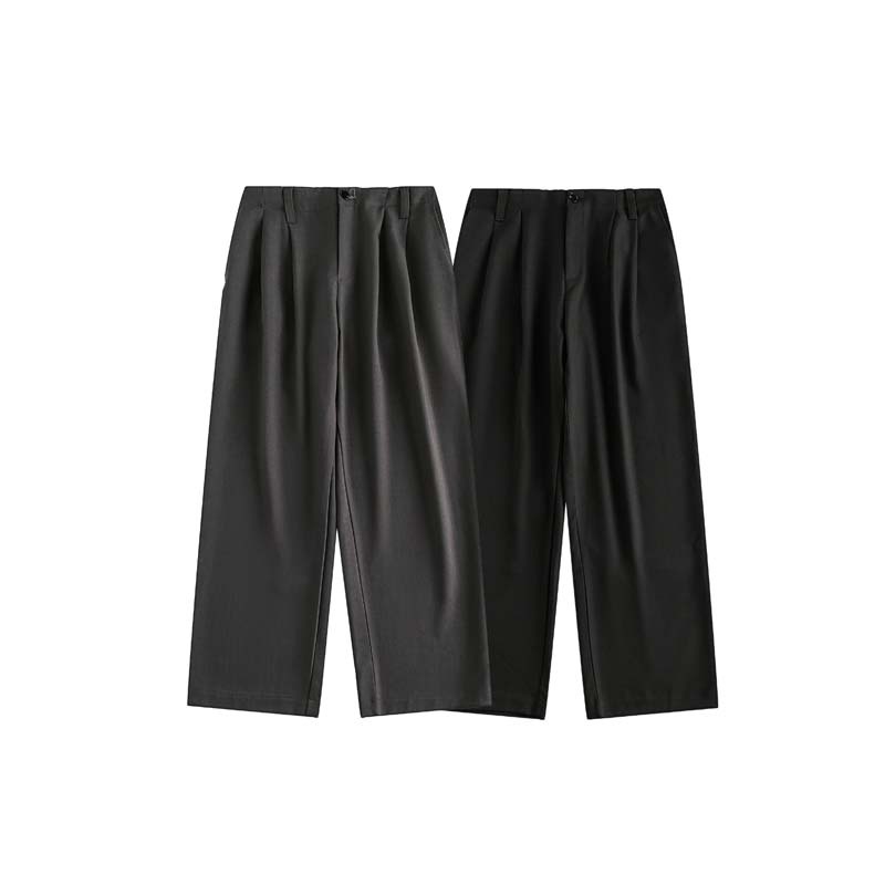 プリーツデザイン日本製ルーズシミターカジュアルパンツメンズ春新作パンツトレンディブランドルーズ無地マイクロワイドパンツ