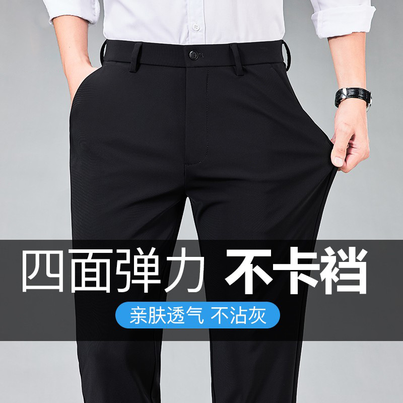 2025夏の新型男性カジュアルパンツ男性薄手弾力速乾アイスパンツファッション百合ストレート長ズボン