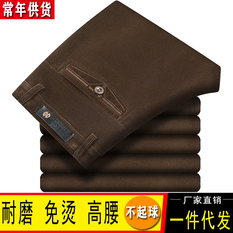 春秋ルーズメンズコーデュロイパンツ中高年コーデュロイカジュアルパンツお父さんコーデュロイハイウエストストレートストレッチパンツ