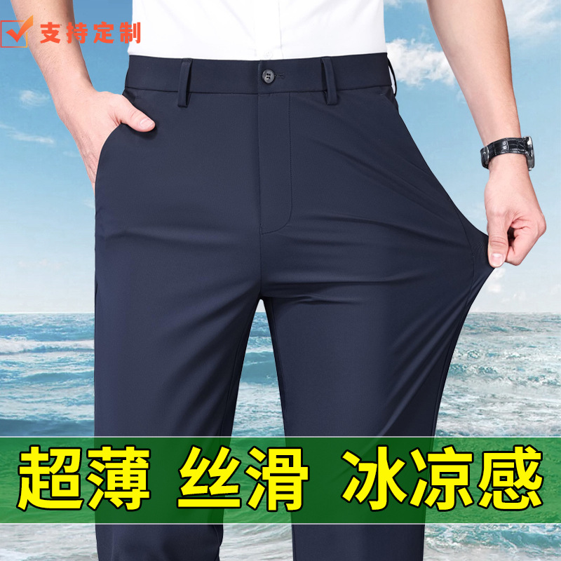 弾力カジュアルパンツ男性夏氷糸薄いストレート長ズボン中高年ゆるいビジネスパンツ高級感