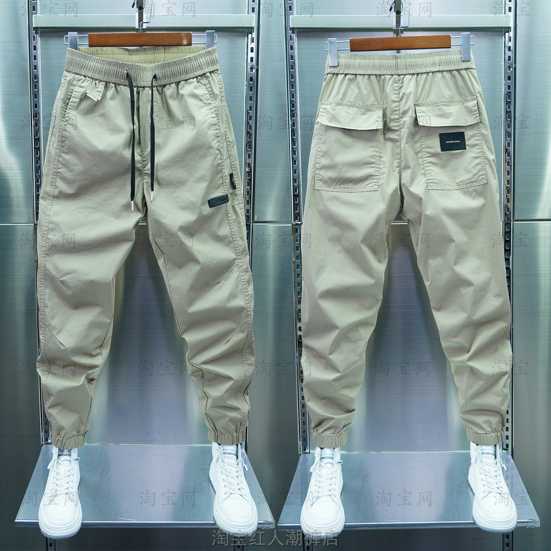 春夏の薄いタイプの男性のカジュアルなズボンの純色の弾力は身を修める小さい足のズボンのファッションのブランドの韓国版の百合の足のハーレムのズボンをつなぎ合わせます。
