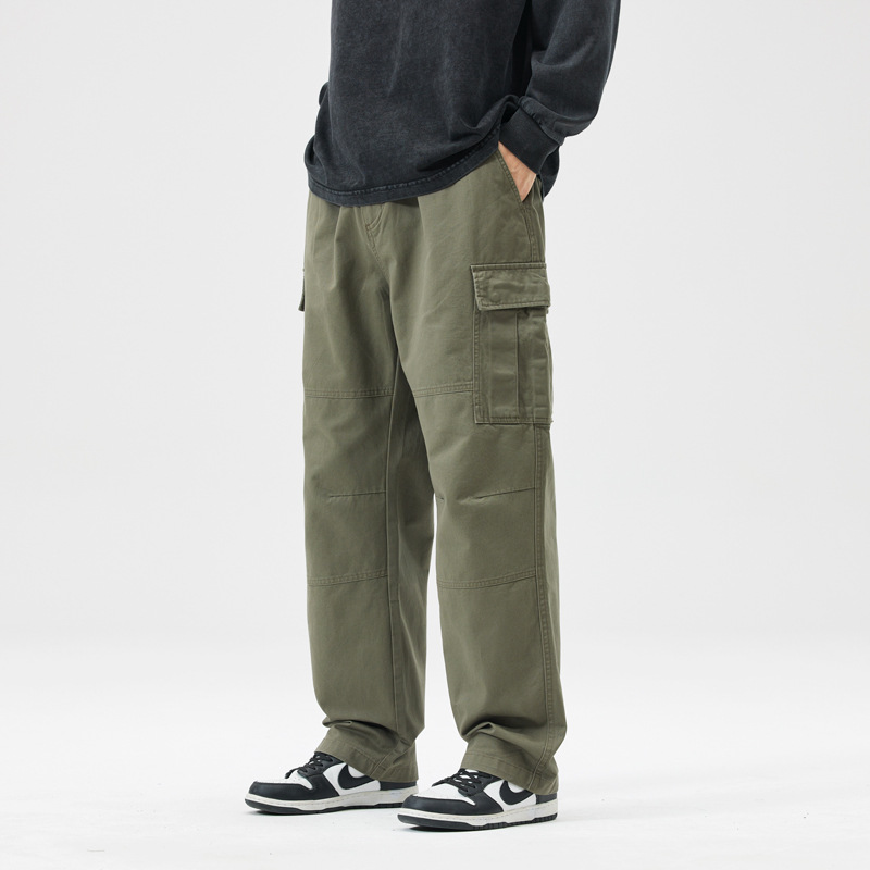 春秋の綿の多ポケットのズボンの男性のゆったりとしたストレートのアメリカのファッションのブランドの緑色のレジャーのズボン