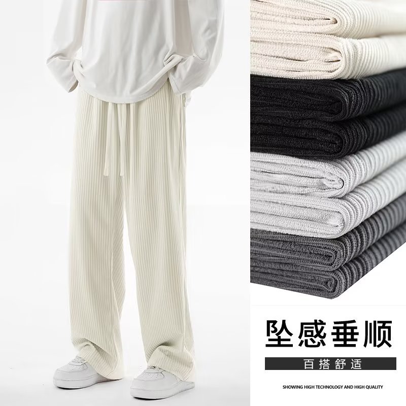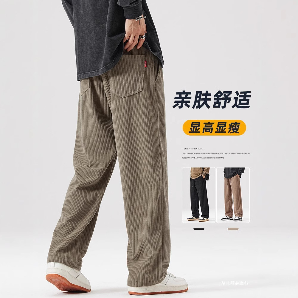 香港風復古コーデュロイズボン男性夏の薄いタイプの高街ins潮スポーツカップルのゆるい足のカジュアルパンツ