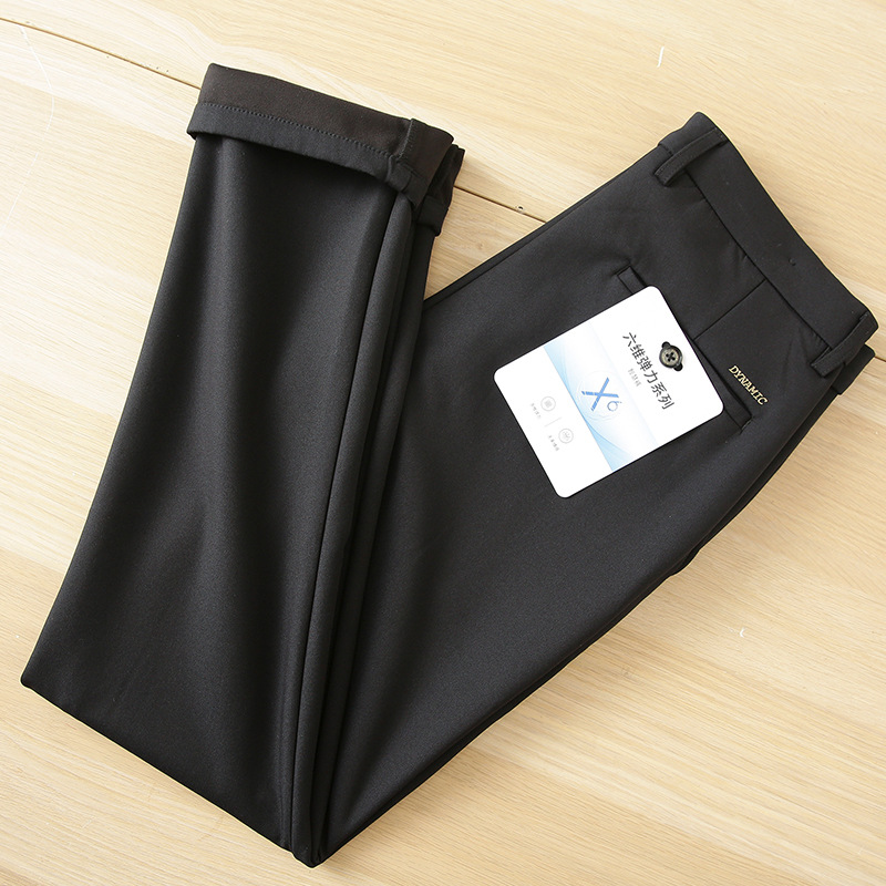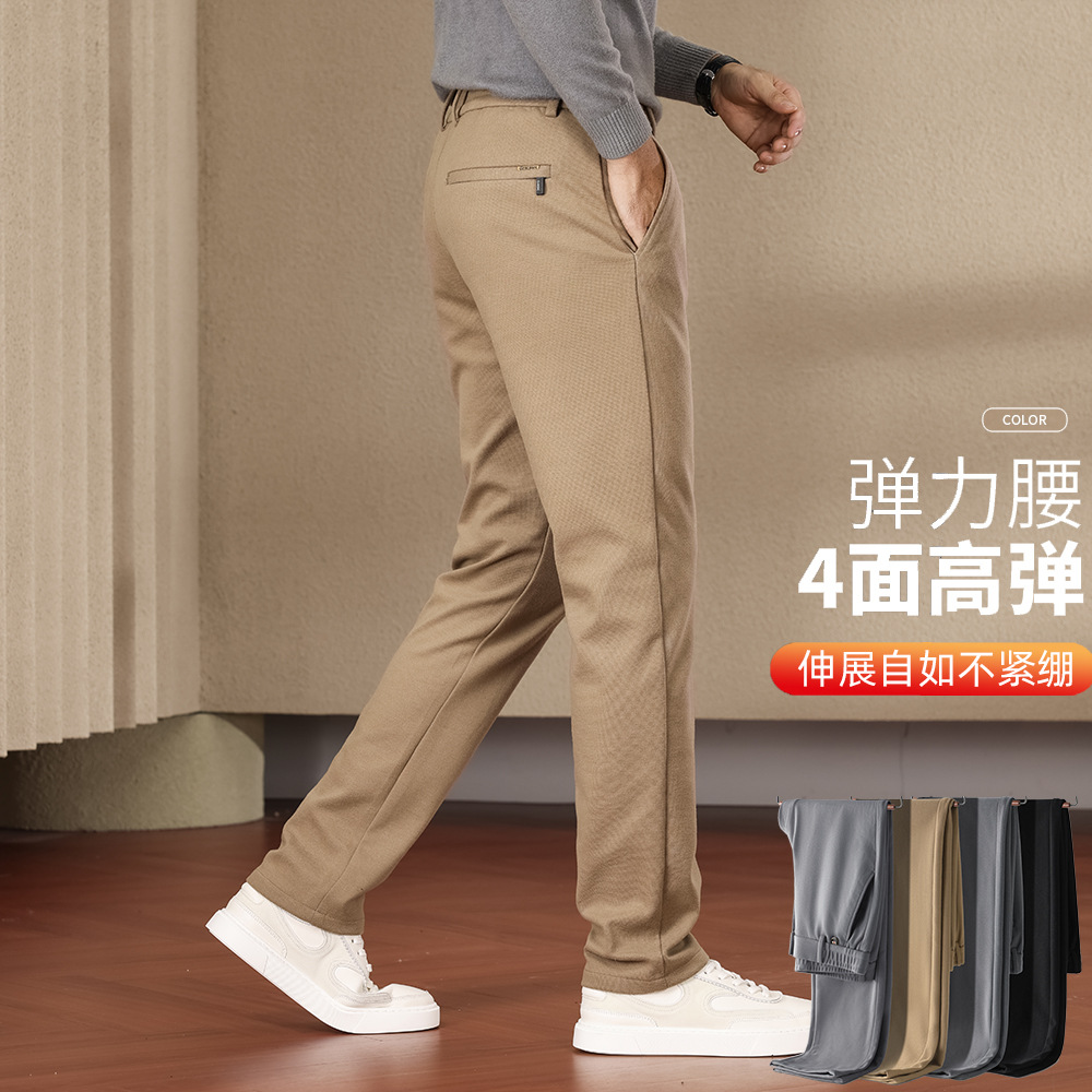 2025秋冬新作 厚手ストレッチ防シワメンズカジュアルパンツ ストレートビジネスカジュアル裏起毛パンツ メンズ
