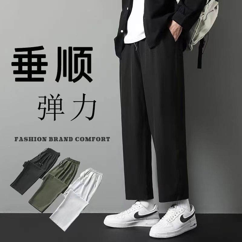 メンズカジュアルパンツメンズ夏薄いファッション無地ビジネス多用途ストレートパンツ快適で通気性のあるスポーツパンツ