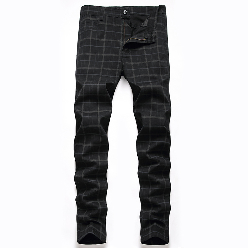 新型カジュアルズボン男性クロスボーダー大サイズ高級弾力正装ズボン弾力修身格子ズボン欧米ズボン