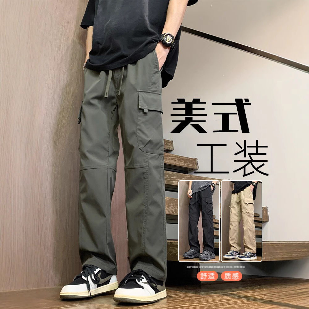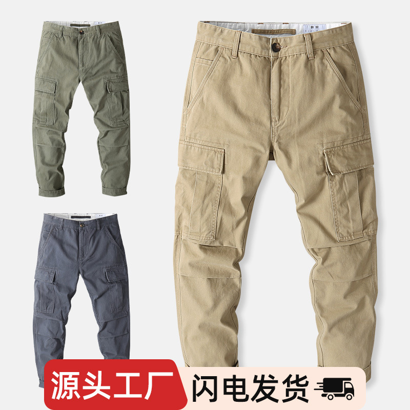 男子工装ズボン男子モデル春秋アメリカのゆるいストレートパンツ日系カーキ色カジュアルパンツ秋の新製品
