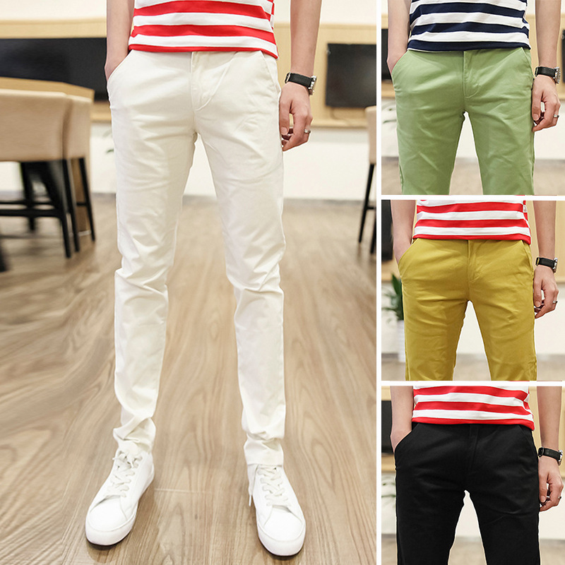 夏のメンズカジュアルロングパンツメンズスリムフィット純綿メンズパンツ2025新しいストレートホワイトスーツパンツ